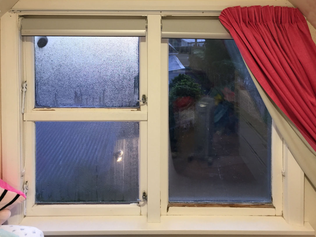 These windows were photographed part way through the EVS installation process and record the dramatic improvement of condensation reduction compared to the single glazing panels. Condensation can be totally eliminated by using adequate ventilation systems, but EVS helps to reduce the damaging effects of condensation and moisture from your windows through increased thermal performance.